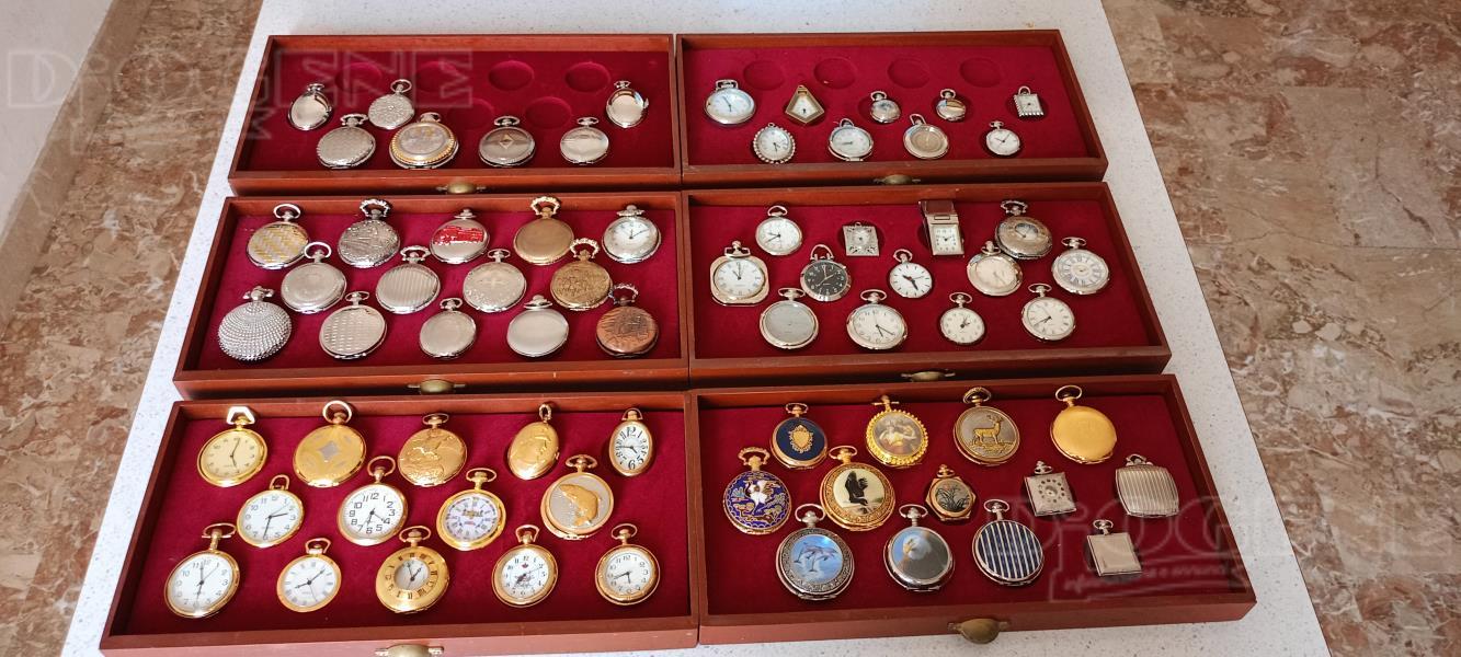 I d'epoca hachette, collezione di 70 orologi da tasca con raccoglitore con 70 fascicoli + contenitori con espositori. Vendo euro 150. Tel. 328/6272339