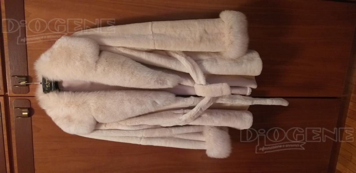 PELLICCIA di alta sartoria, foderata, taglia 46, modello a tre quarti in lapin con collo e polsi di volpe bianca con chiusure a scomparsa e comoda cintura, capo giovanile, elegante e pratico, vendo. Prezzo trattabile. Ritiro a carico dell' acquirente. No perditempo.