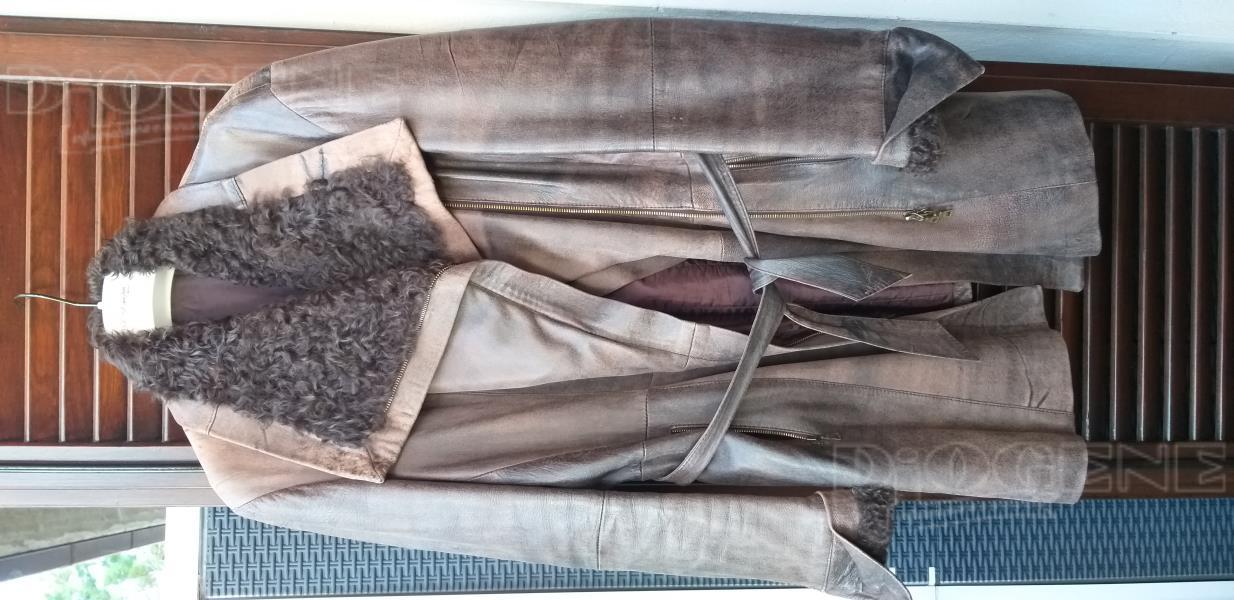 GIACCA donna in vera pelle foderata, modello a tre quarti, pratico, giovanile e di moda, con finiture in pelliccia nei reverves del collo e dei polsi, chiusura con cerniera e cintura, due comode tasche con chiusura a zip, taglia 48, vendo. Ritiro a carico dell'acquirente. No perditempo.