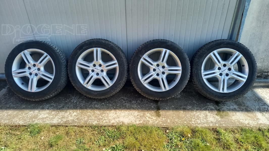 CERCHI IN LEGA n. 4 in lega MAK a 5 fori da 16 con gomme quattrostagioni usate di 50 giorni marca Laufenn 205/55R 16/94v xl M+S con spalle salvacerchi,a tendenza +x pioggia e neve, per Alfa 147 e altre. Vendo a 200 euro, cerchi a 300. Le gomme sono state pagate 400.