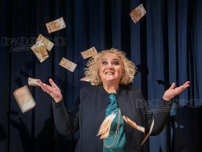 Maria Pia Timo sul palco del Dragoni porta "Sol di Soldi - Vademecum per ridere laddove ci sarebbe da piangere", di Roberto Pozzi e Maria Pia Timo, con la collaborazione di Daniela Lorizzo. Uno spettacolo comico sull’ultimo vero argomento tabù, che tocca tutti in maniera trasversale: il denaro e il nostro rapporto con esso, dalla quotidianità spicciola a come condiziona la nostra vita. Dalla gestione familiare dei conti alle criptovalute, passando dalla storia delle prime monete in terracotta dei popoli antichi fino a paypal. Uno spettacolo esilarante e coinvolgente, scritto con la consulenza di una banking trainer, per ridere di un intero mondo finanziario di cui non capiamo nulla (o quasi), affidandoci ad altri e tenendo le dita di una mano incrociate e l’altra mano a cercare scongiuri sotto la cintola. Uno spettacolo che non vuole insegnare niente, ma che fruga nella nostra ignoranza e scopre il lato comico, a tratti tragicomico, della nostra epoca.
