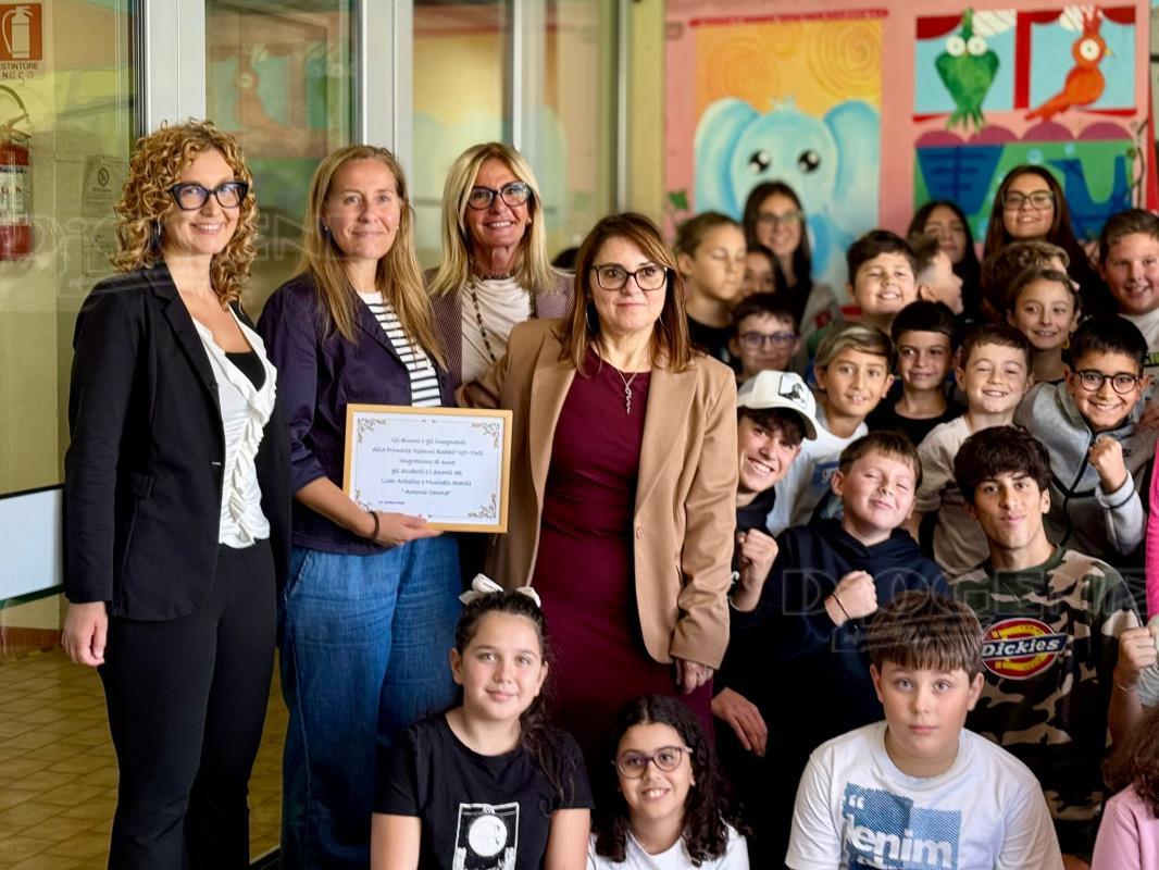 Le opere, nate in occasione della seconda edizione del Festival “FANTASIA: un ponte tra Gianni Rodari e Michael Ende”, rappresentano un viaggio visivo nel mondo dell’immaginazione, dell’infanzia e della creatività condivisa. Gli studenti del dipartimento di Scenografia, guidati dalla professoressa Carmen Imperio, hanno illustrato ai bambini come hanno lavorato in modo cooperativo. "Vedere i nostri studenti mettere il proprio talento al servizio dei più piccoli è motivo di grande orgoglio – ha spiegato la Dirigente del Canova Raffaella Contraffatto – è il segno di una scuola che forma artisti, ma soprattutto cittadini sensibili e creativi.” I piccoli alunni della Primaria Rodari in segno di riconoscenza hanno recitato tre poesie di Gianni Rodari, preparate con le loro maestre, e donato una targa di ringraziamento agli studenti, simbolo della continuità educativa e creativa che unisce bambini e ragazzi sulle orme del grande autore.