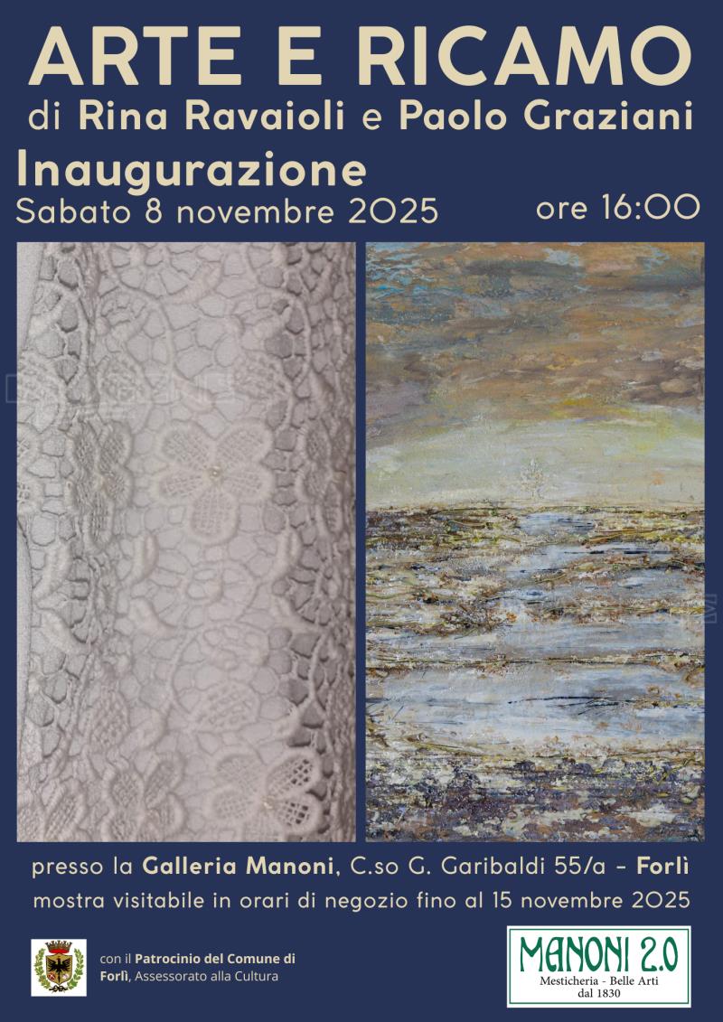 La Galleria Manoni è lieta di annunciare l'inaugurazione della mostra "Arte e Ricamo", una suggestiva esposizione che unisce la maestria artigianale di Rina Ravaioli nel ricamo d'arte e l'originale interpretazione pittorica di Paolo Graziani.
