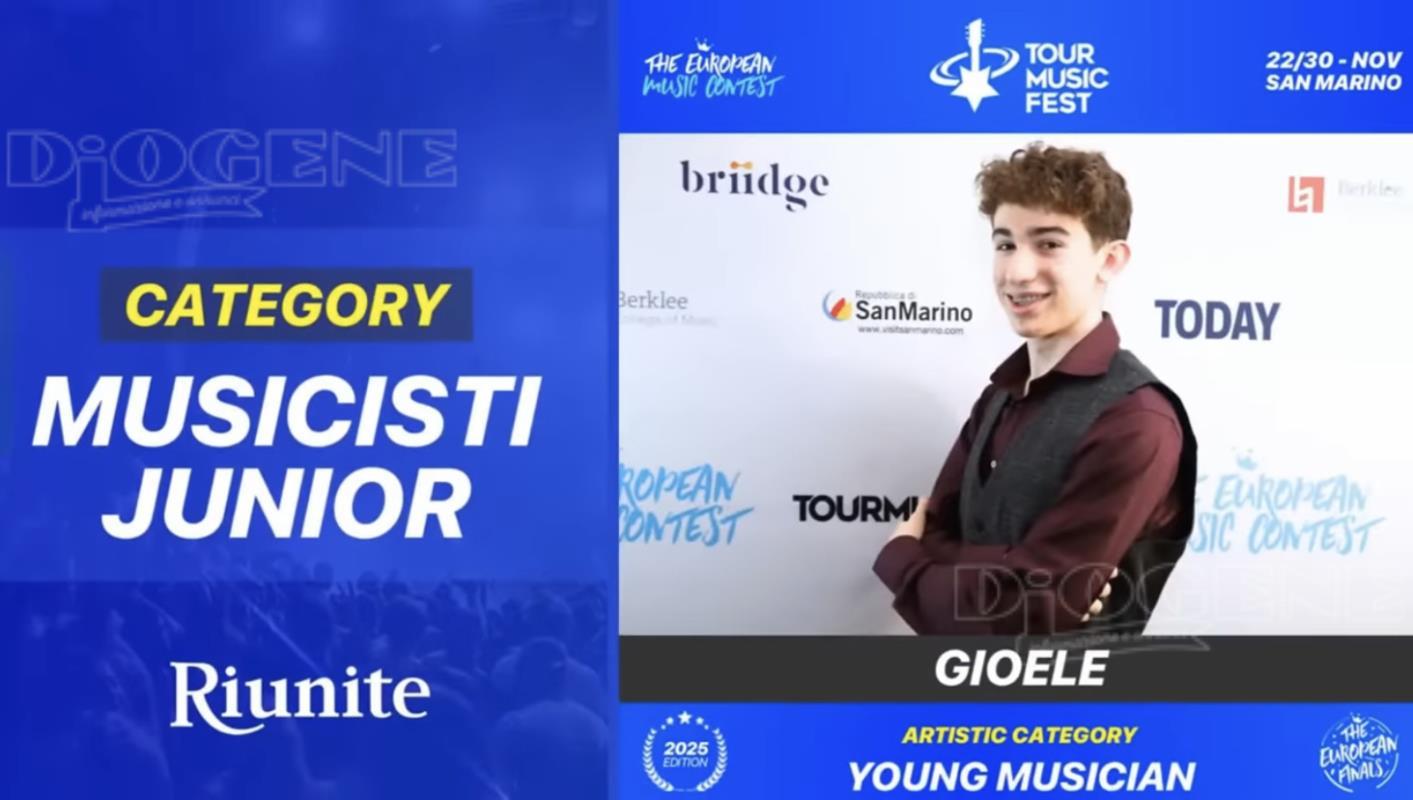 Gioele, dopo aver brillantemente superato le Live Audition della nuova edizione del Tour Music Fest - The European Music Contest, vola nella Repubblica di San Marino per le finali nazionali della categoria Pianisti Junior.