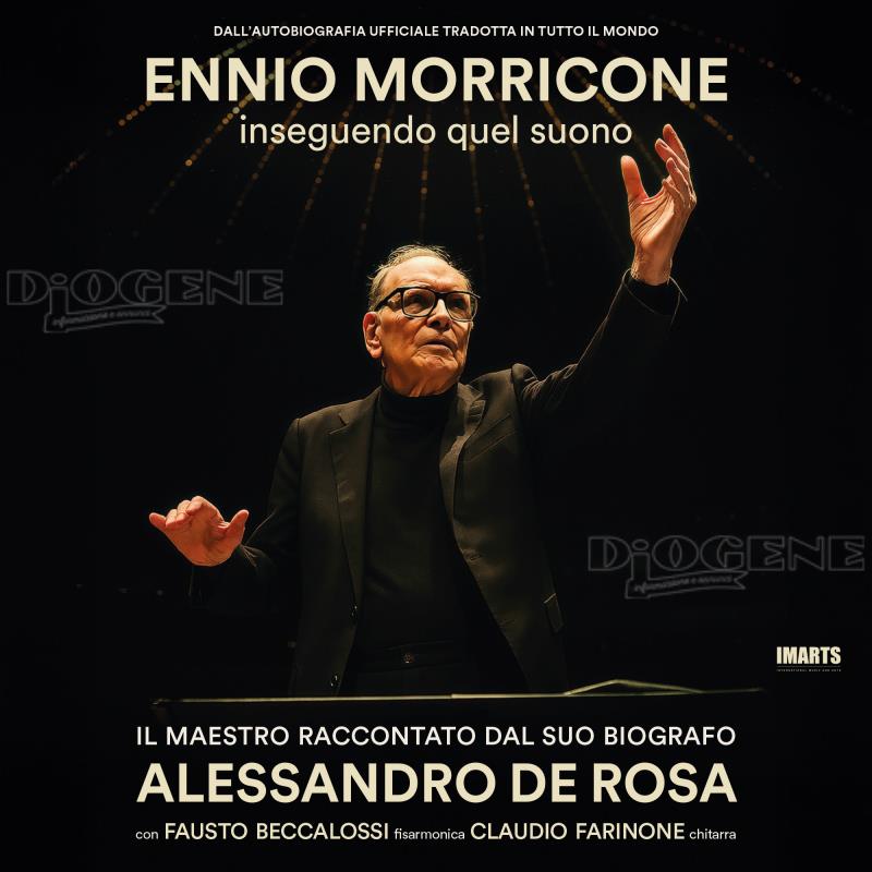 “Ennio Morricone: Inseguendo quel suono” è uno spettacolo–concerto intimo e coinvolgente che intreccia parole, immagini e musica ispirandosi all’omonima autobiografia ufficiale del Maestro, pubblicata in tutto il mondo. Ne nasce il ritratto intenso e profondo di uno dei più grandi e influenti compositori del Novecento. Sul palco, il racconto prende vita attraverso la voce del biografo ufficiale Alessandro De Rosa, coautore insieme al Maestro di quel prestigioso libro-testamento, i filmati inediti in cui lo stesso Morricone si confida al pubblico e la grande musica del Maestro, interpretata da due musicisti d’eccellenza: Fausto Beccalossi, tra i massimi virtuosi internazionali della fisarmonica cromatica, e Claudio Farinone, chitarrista e compositore di rara versatilità. Un percorso appassionato tra pensieri, intuizioni, emozioni ed inattese scelte di vita che hanno condotto Morricone alla creazione delle sue opere immortali.