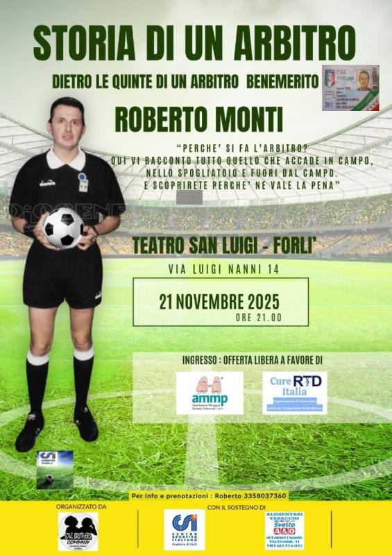 Venerdì 21 novembre alle ore 21.00 al teatro San Luigi si terrà l'evento "Storia di un arbitro" di Roberto Monti, ex arbitro.