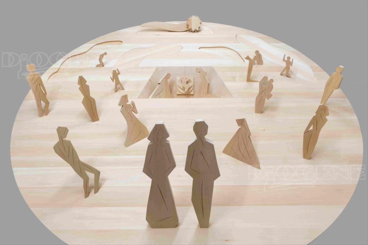 Oltre al presepe saranno esposti i bozzetti preparatori e una selezione di opere lignee in armonia con il tema dell’evento con un linguaggio informale, omogeneo e minimalista