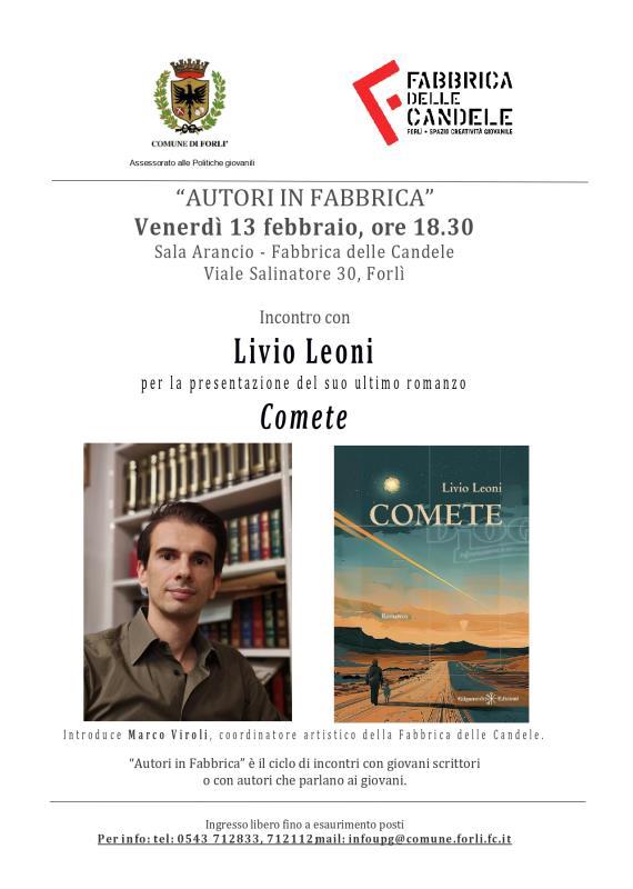Per il ciclo Autori in Fabbrica: Assessorato alle Politiche Giovanili del Comune di Forlì presenta il romanzo Comete