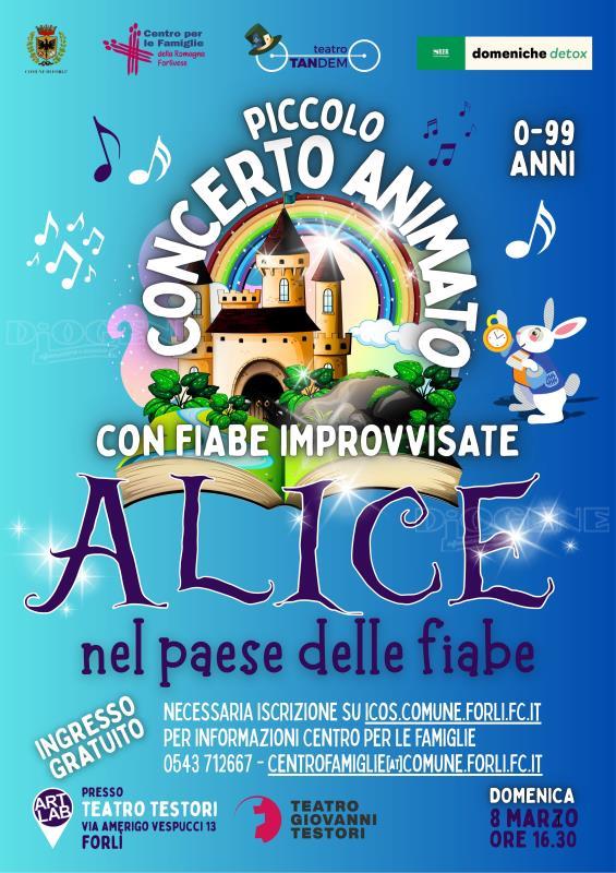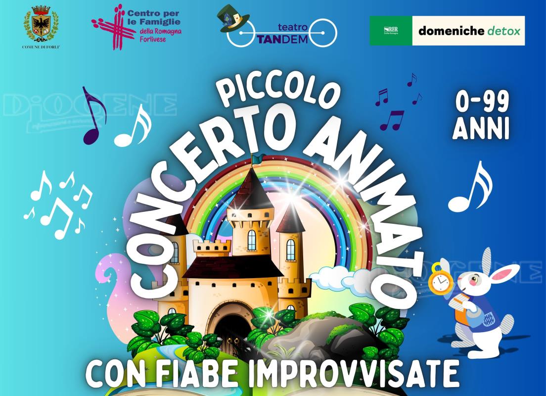 Si tratta di un piccolo concerto animato con il racconto di fiabe, attraverso la tecnica dell'improvvisazione teatrale, adatte a tutto il pubblico (0/99 anni) ma in particolare rivolto ai più piccoli, a cura di Elisabetta Canziani, musicista, musicoterapeuta e docente presso la Scuola Sec. di I grado “Viale della Resistenza” di Cesena e Michele Di Felice, dirigente psicologo presso la Neuropsichiatria Infantile della AUSL di Modena ed esperto di improvvisazione teatrale. Sulla scena, insieme agli attori, anche sei differenti strumenti musicali.