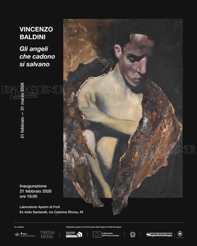 "Gli angeli che cadono si salvano" è la nuova mostra di Vincenzo Baldini, in esposizione al Laboratorio Aperto di Forlì - Ex Asilo Santarelli dal 21 febbraio 2026.