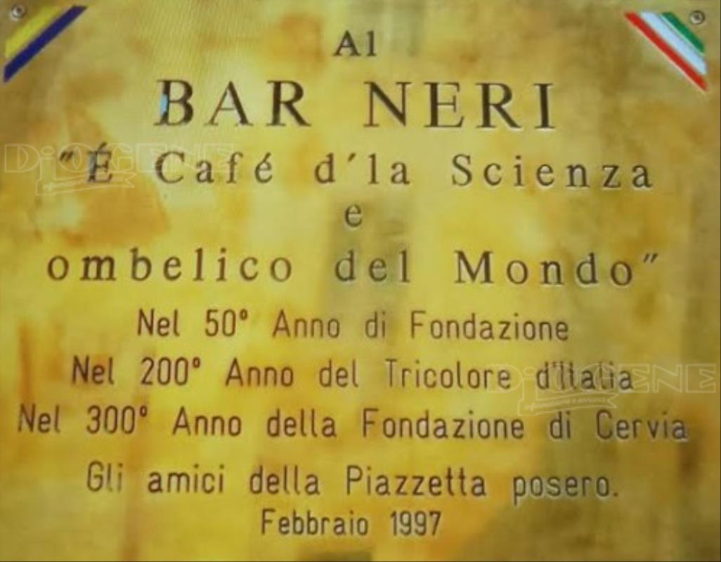 Una targa collocata nel 1997 in una parete esterna vicina ad un ingresso, riportava questo testo: Al BAR NERì’ “E’ café d’ la Scienza e ombelico del Mondo”, Nel 50° Anno di Fondazione - Nel 200° anno del Tricolore - Nel Trecentesimo della Fondazione di Cervia”-Gli Amici della Piazzetta posero. Febbraio 1997.