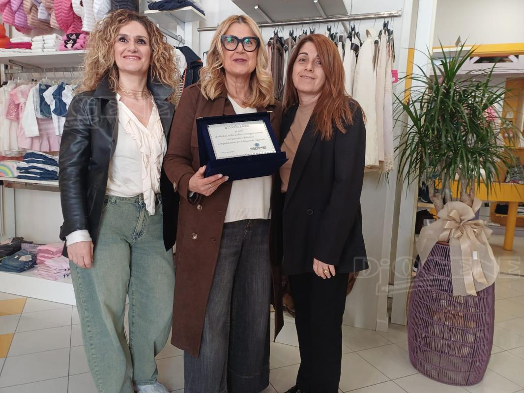 Nella foto la consegna della targa da parte di Sabrina Baldazzi responsabile di Confartigianato Rubicone a Elena Zocchi, titolare del negozio Peter Pan a San Mauro Pascoli, con la collaboratrice Elisa Ravegnini.