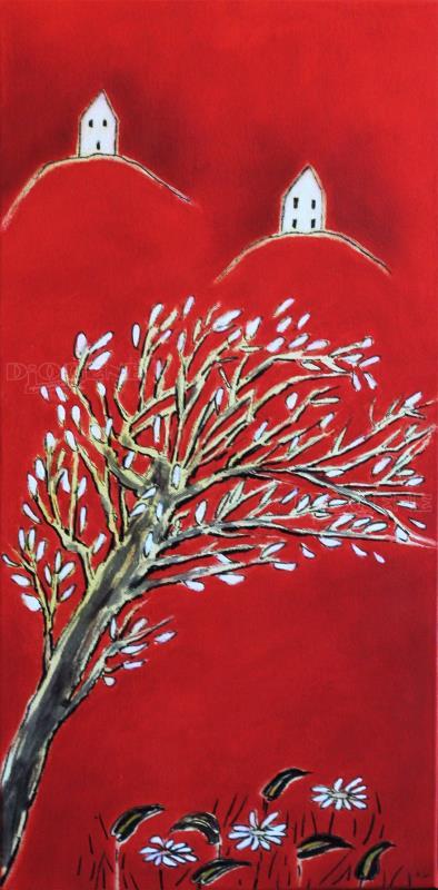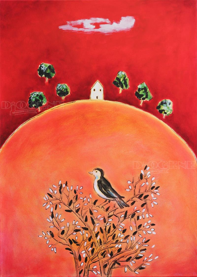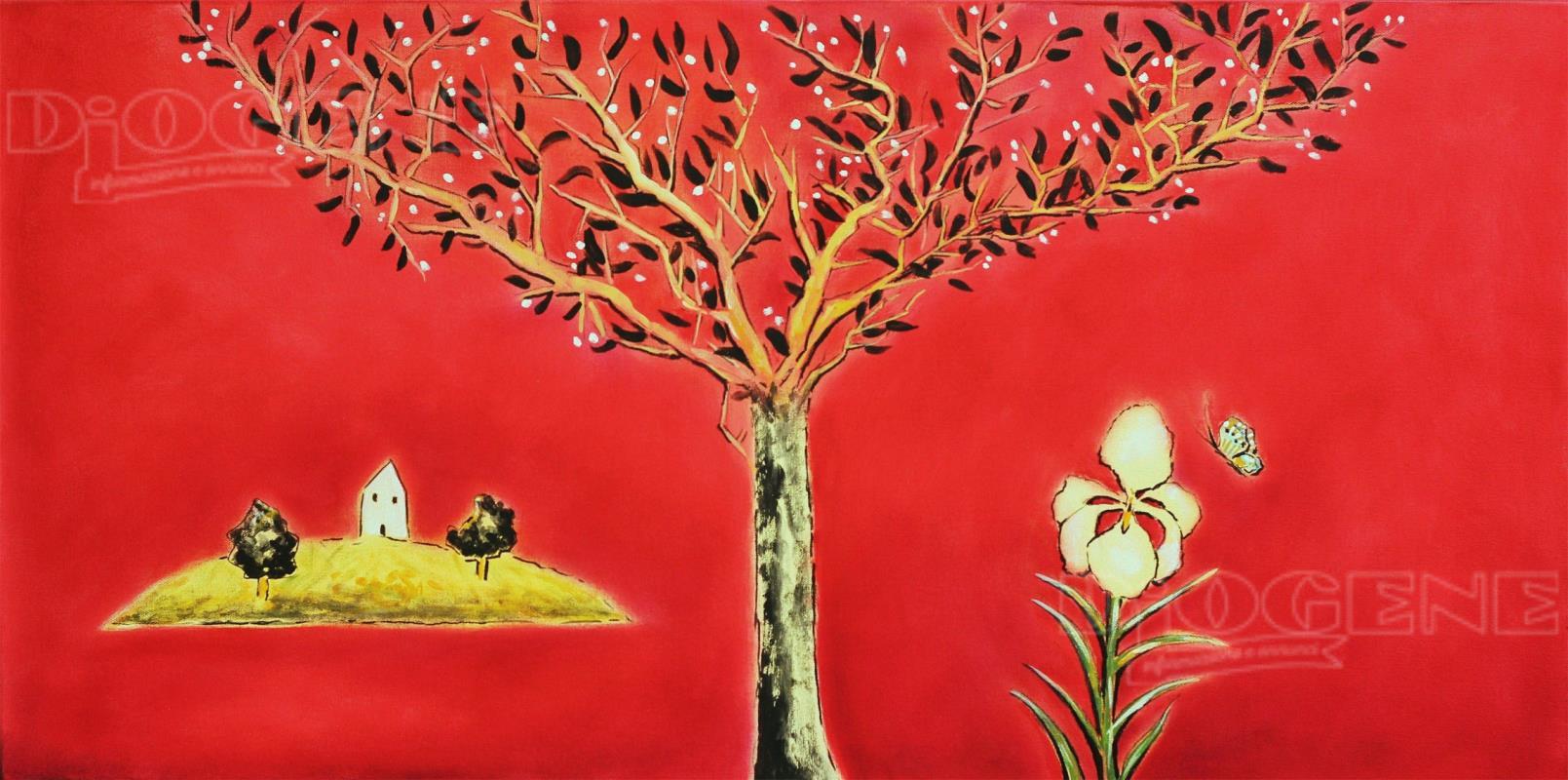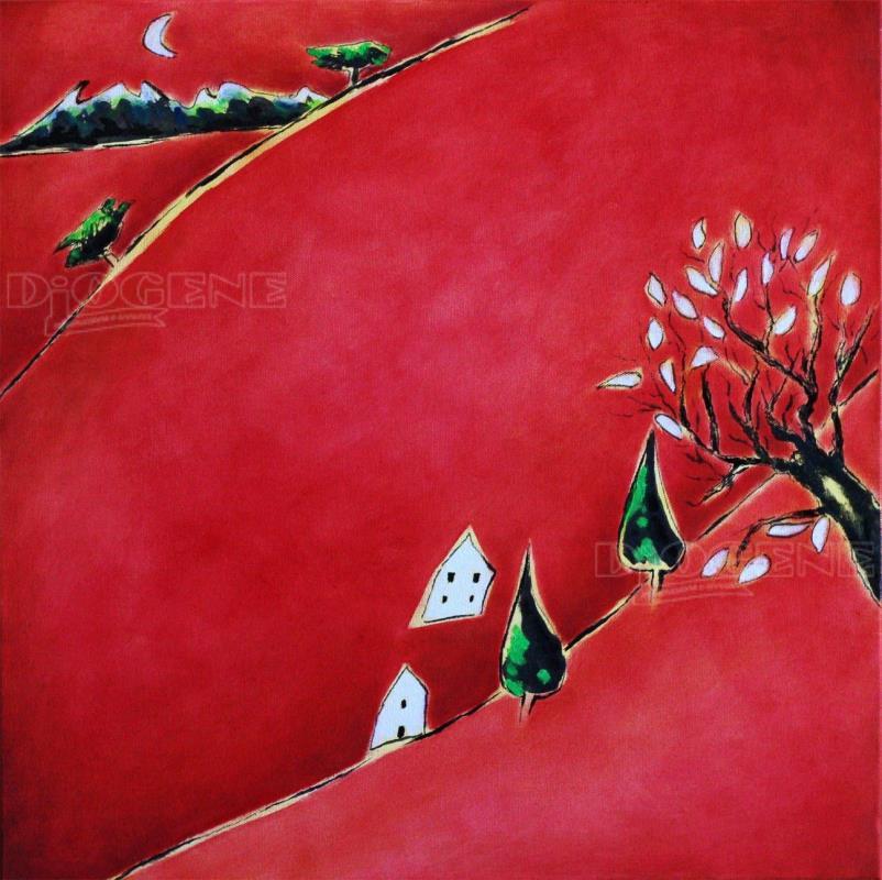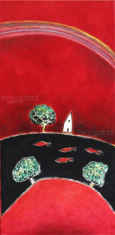 Il motivo caratterizzante delle opere in mostra è il paesaggio su sfondo rosso, perchè essendo il rosso il colore più caldo fa riferimento al riscaldamento globale del pianeta ed ai preoccupanti e sempre più accelerati cambiamenti climatici.