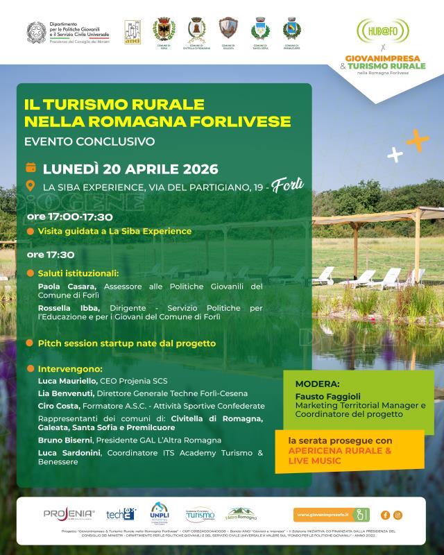 C’è un momento in cui i progetti smettono di essere idee e diventano storie reali. È questo lo spirito che accompagnerà l’evento conclusivo di “Giovanimpresa & Turismo Rurale nella Romagna Forlivese”, in programma lunedì 20 aprile 2026, presso La Siba Experience, nel cuore della natura forlivese.