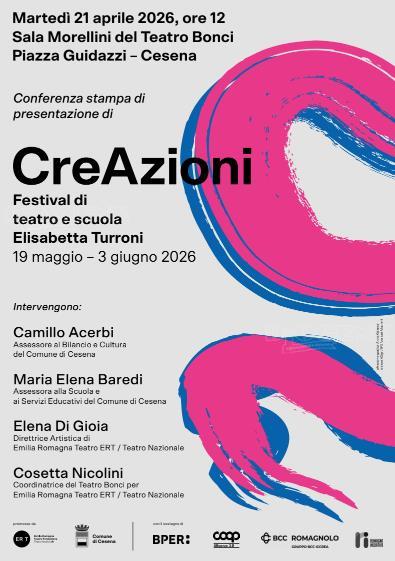 Questa mattina il Teatro Bonci di Cesena Emilia Romagna Teatro ERT / Teatro Nazionale ha presentato CreAzioni - Festival di teatro e scuola Elisabetta Turroni, in programma dal 19 maggio al 3 giugno 2026.