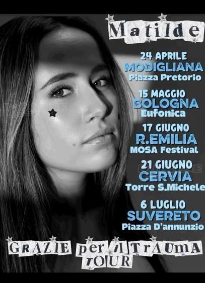 Matilde Montanari, dopo essere arrivata sul podio alla finale della puntata conclusiva di «The Voice Generations», condotta da Antonella Clerici su Rai 1, insieme alla zia Sara Montanari, e dopo l’uscita del primo Ep Trauma, apprezzatissimo dalla critica parte per il suo primo tour ufficiale supportata dall’agenzia di booking Materiali Musicali, organizzatrice del Meeting delle Etichette Indipendenti.