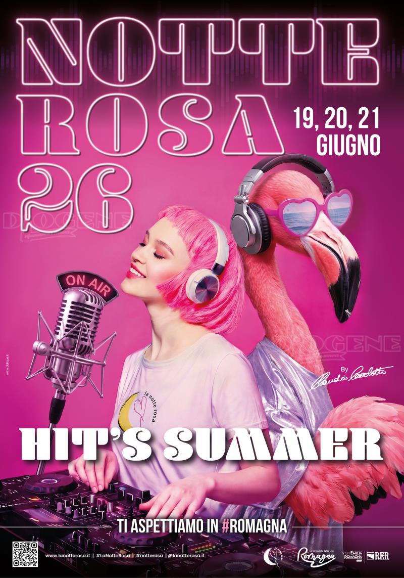 «Comincia così la Notte Rosa 2026. Riparte dal fenicottero, simbolo del territorio, e da HIT’S SUMMER, che è insieme le hit dell’estate e l’estate che inizia. Quest’anno il manifesto celebra le radio e la musica come linguaggio comune: voci diverse che raccontano la stessa energia. La Notte Rosa non è solo una festa, è un racconto collettivo fatto di musica, territorio e persone. È l’inizio dell’estate italiana, ancora una volta.»